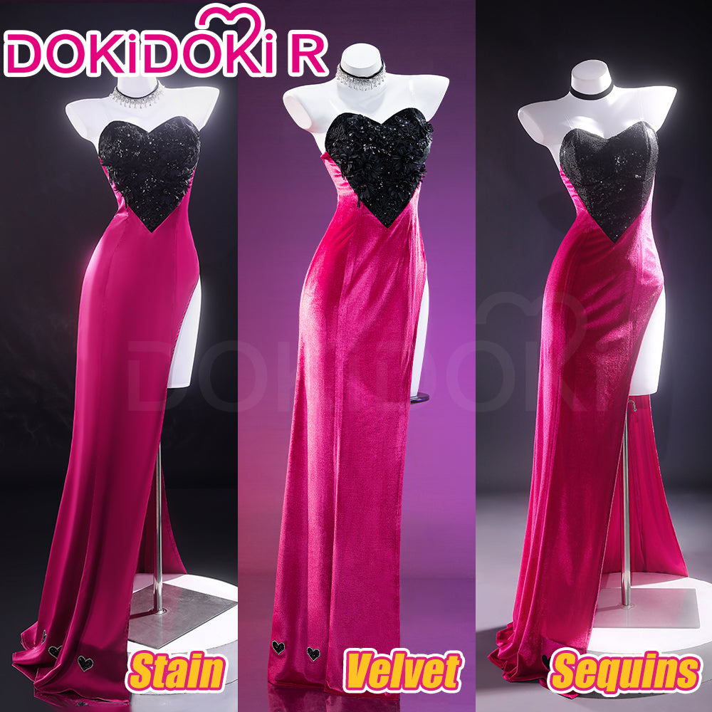 【Size XS-3XL】DokiDoki-R Anime Cosplay Costume Purplish-Red Black Heart Dress Satin / Sequins Strapless Formal Dress Gown
